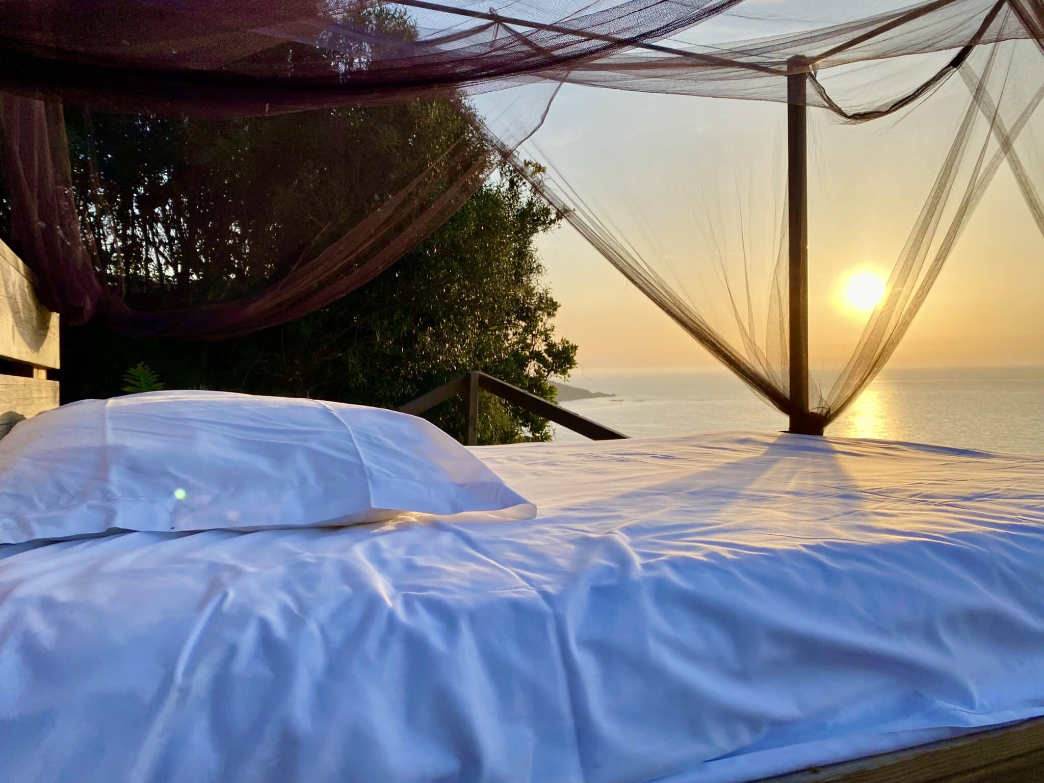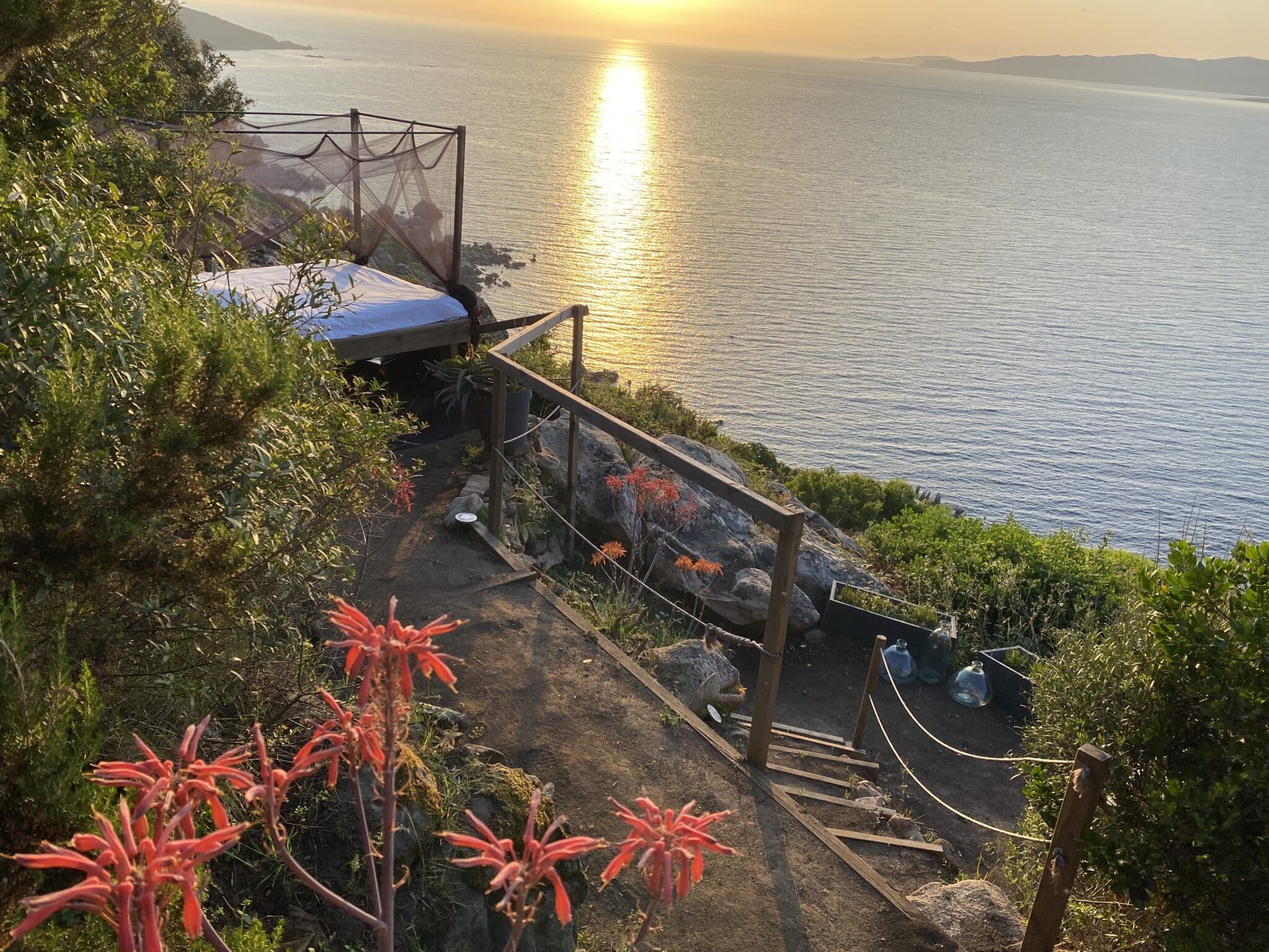 Our unusual accommodation is a bed under the stars, surrounded by nature with breathtaking views of the sea and the entire Gulf of Valinco.